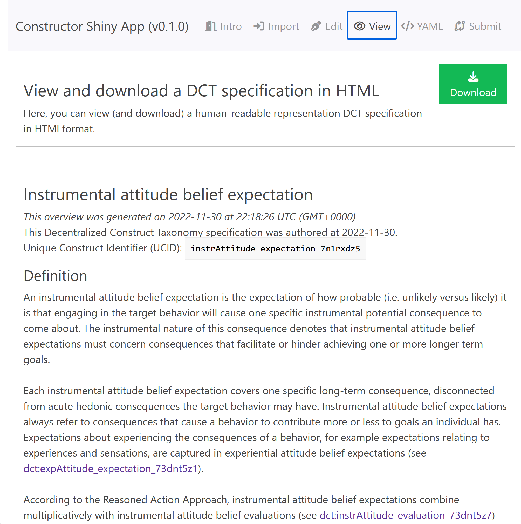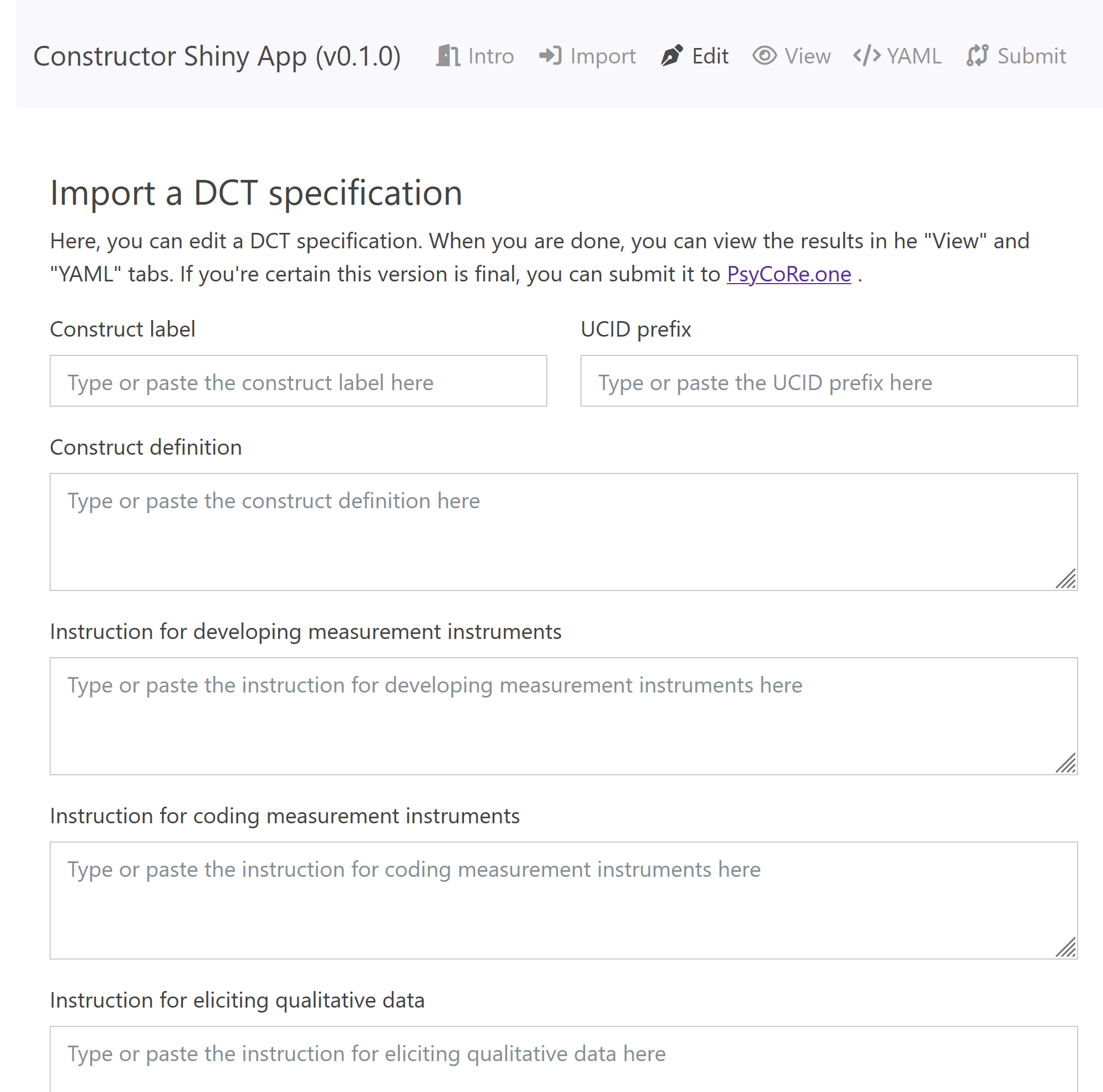 1️⃣ Type in a DCT specification (a comprehensive construct definition and the corresponding instructions for using it);