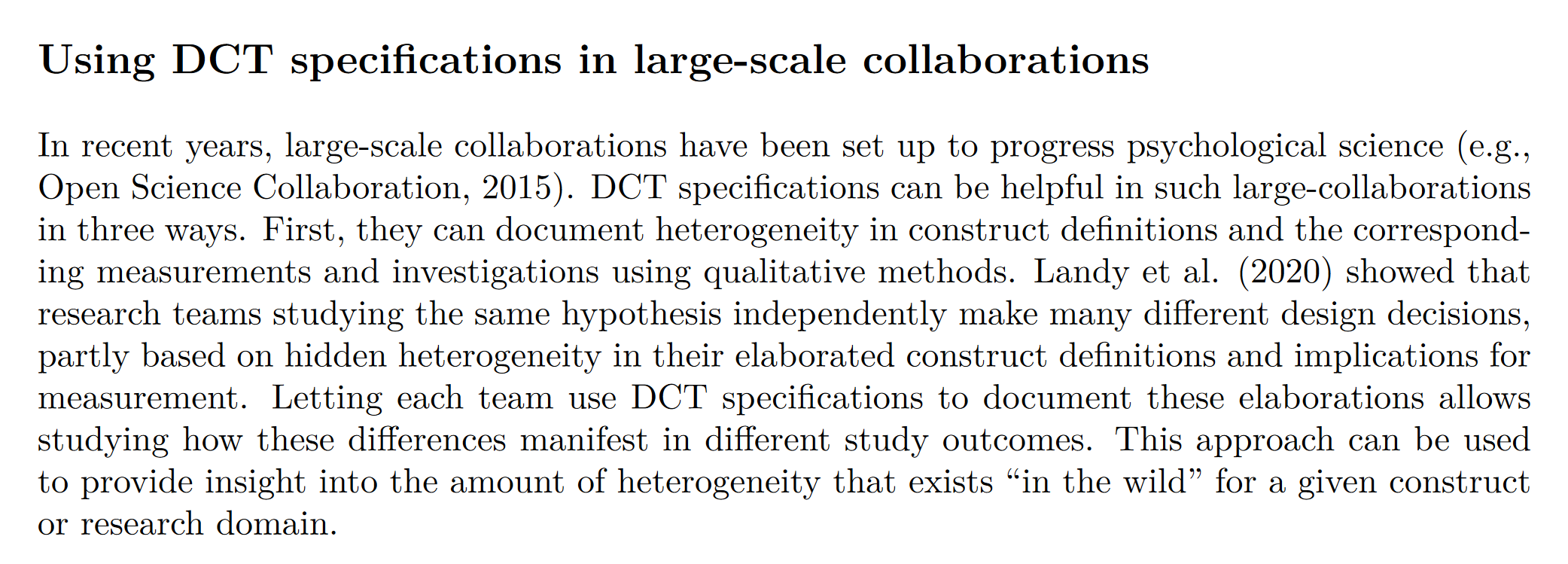This heterogeneity in “study-level elaborated construct definitions” is in itself not bad. Epistemic diversity has a number of benefits, and studying multiple variations of construct definitions seems sensible.